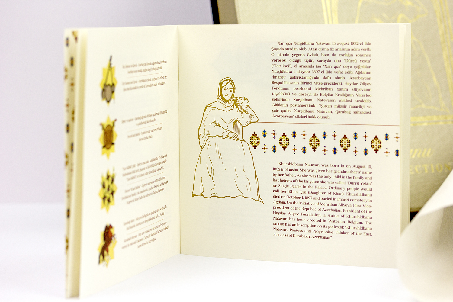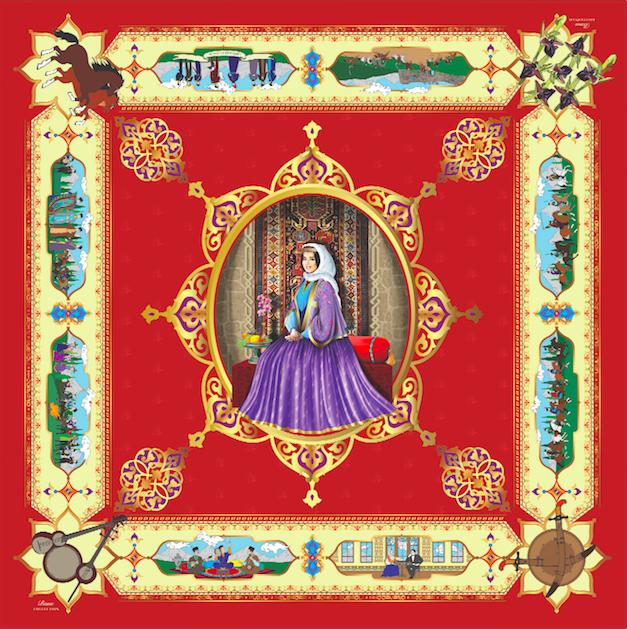 Yaylıq 90 sm ölçüdə olmaqla kvadrat formadadır, İtaliyada yüksək keyfiyyətli ipəkdən istehsal edilmişdir. Yaylığın nəfis tərtibatlı qutusu və yaylıq üzərində olan bütün elementlərin ətraflı izahı verilmiş kitabçası vardır.